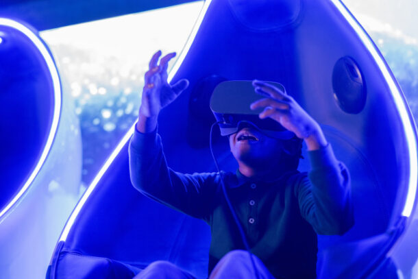 Discover the beautiful and complex behaviors of humpback whales on this stunning journey. Filmed by free-diving cinematographer Jeff Hester, this virtual reality (VR) experience places guests in the middle of the action, accompanying these gigantic mammals as they propel themselves through the open ocean. From seeing a female bond with her calf to watching young whales at play before they leave the tropical waters for their Antarctic feeding grounds, this adventure will open your eyes to a whale’s world.
