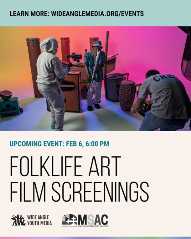 Speakers at the event will include Wide Angle youth producers and Maryland artists. Please note, the snow date for this event is Saturday, 2/7, at the same time.