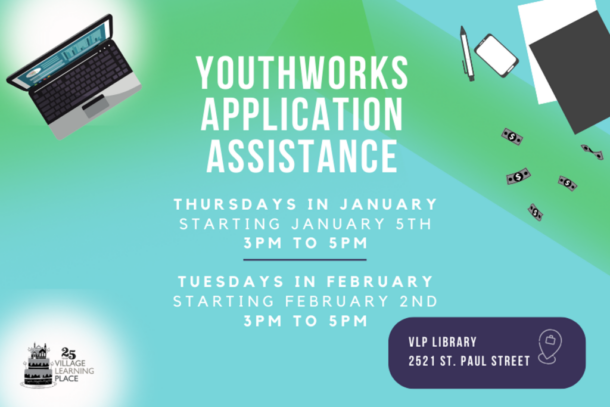 Do you need help completing the online YouthWorks application for a summer job? If so, come to the library for free tech help. The VLP Librarian will assist patrons with submitting the online YouthWorks application.