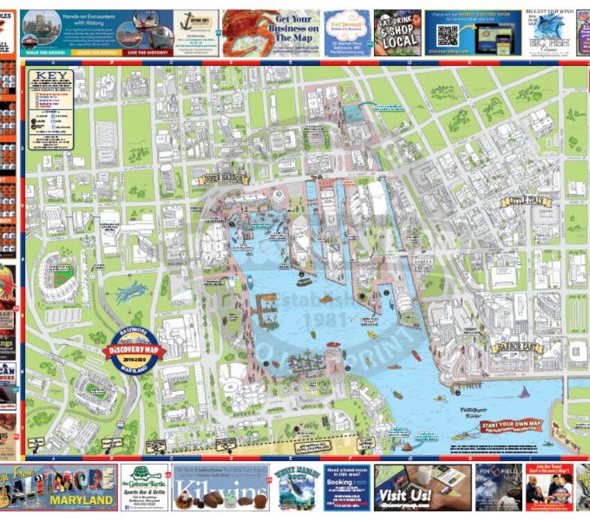 Baltimore Discovery Map is multi-media alternative advertising program consisting of Baltimore Marketplace – a premium online travel guide and Baltimore Discovery Maps – 200,000 FREE colorful, hand-drawn printed maps that are distributed across Baltimore.