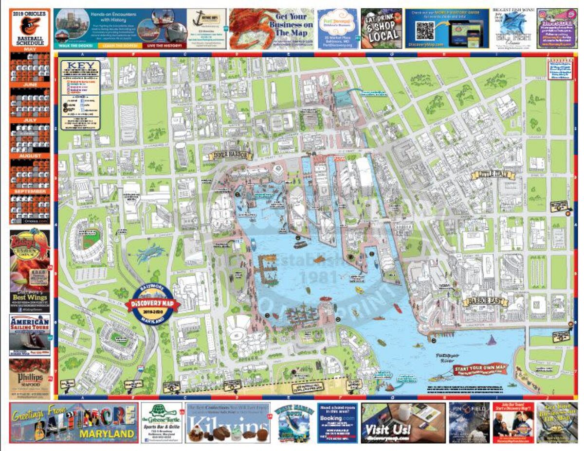 Baltimore Discovery Map is multi-media alternative advertising program consisting of Baltimore Marketplace – a premium online travel guide and Baltimore Discovery Maps – 200,000 FREE colorful, hand-drawn printed maps that are distributed across Baltimore.