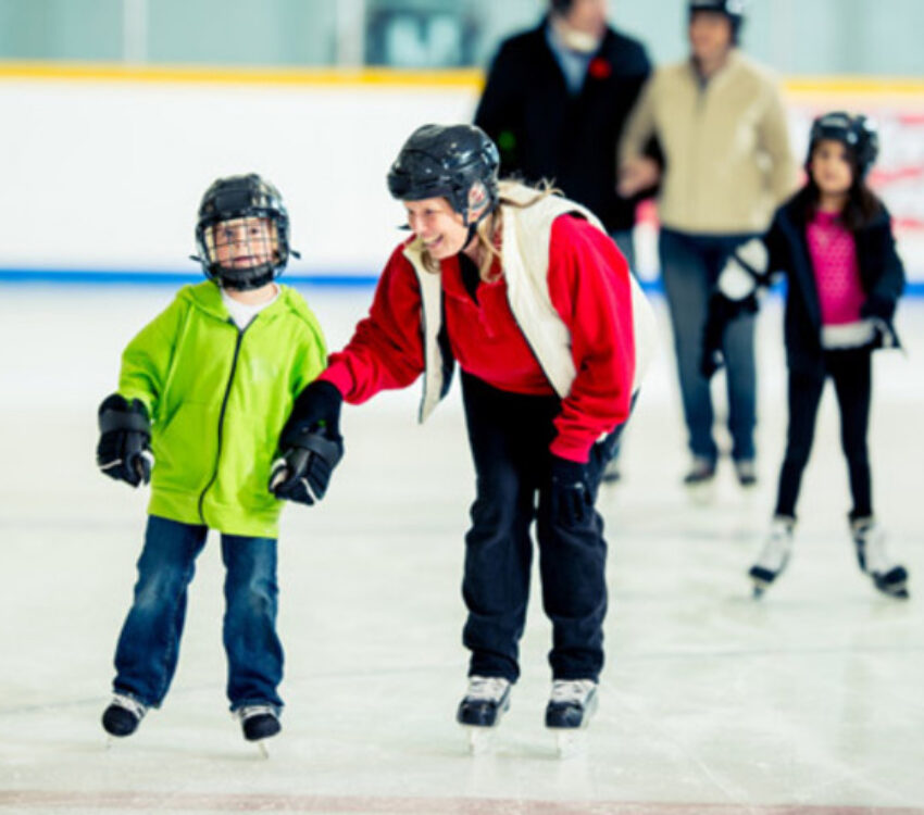 This full-sized rink, equipped with a warm-up room, fireplace, concession stand and skate shop, features ice hockey and skating sessions from October to March.